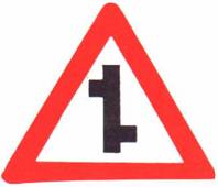 اندماج شارع فيه حق الأولوية مع طريق جانبية من اليمين (ممنوع الاستدارة إلى الطريق الجانبية) |