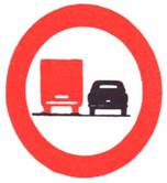 نهاية مقطع الطريق الذي يسري عليه قيد التجاوز | لا يجوز لمركبة تجارية يزيد وزنها الإجمالي المسموح به عن 4 أطنان أن تتجاوز أو أن تمر عن مركبة ميكانيكية تسير على اكثر من عجلتين | نهاية مقطع الطريق الذي يسري عليه قيد التجاوز |