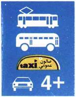يجوز السفر في الشارع أو في المسلك للقطار الخفيف وللباص والصالون العمومي وللمركبات التي تنقل على الأقل عدد الركاب المذكور في الشاخصة | أعطِ حق الأولوية لحركة السير في الطريق القاطعة أمامك | قف ! وأعطِ حق الأولوية لحركة السير في الطريق القاطعة أمامك |
