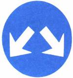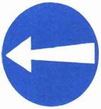 شاخصة تحذير وإرشاد في منعطف حاد : على سائق المركبة أن يتمهل بالسير ويتابع سيره بالاتجاه الموسوم باسهم على الشاخصة. في الأمكنة التي تنفذ فيها أشغال على الطريق تكون الألوان برتقالي - ابيض. | ||